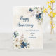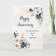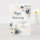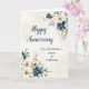 Happy wedding anniversary card for mom and stepdad with elegant navy blue and white watercolor flowers.