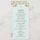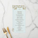 This personalized Baroque Christian Wedding Menu card is the perfect addition to your vintage-inspired, God-centered celebration. Featuring an ornate mocha-tone frame detail against a soft dusty blue background, this menu card exudes timeless elegance. The monogram of the couple's initials adds a personal touch, while the combination of modern and script fonts and a meaningful bible verse on the back brings a graceful, sophisticated style. Ideal for a Rococo Wedding or a religious regency-themed celebration, this vintage design brings a classic and refined touch to your event, making it a truly memorable part of your special day.