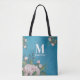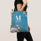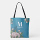 Blue Monogram Blush Pink Floral Custom Tote Bag