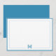 Blue Monogram Double Border Stationery Card