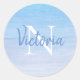 Blue Watercolor Monogram Name Classic Sticker. Monogram script, name, typography, envelope seal, professional personal. Watercolor pastel powder blue lines. Girly feminine. For her.girls,women.