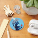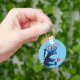 Blue monster kids keychain with a weird creature holding a flower, happily excited. This cute digital illustration has lovely blue and red colours.