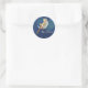 This vintage image has a lovely blonde fairy dressed in gold with black stockings and pretty blue wings. She is sitting on a blue crescent moon. The text reads Blue Moon and the background is a deep night sky blue. See my store Art by MAR for matching products with this design.