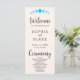 Turn to the back of the program, and you'll find a carefully curated list of the wedding party. The text is presented in classic black and grey, using a simple block font for clarity and sophistication. The words "Welcome," "Ceremony," and "Wedding Party" are artfully crafted in a pretty decorative script font, adding a touch of whimsy and romance to the overall design.