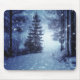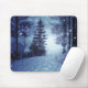 Blue Moonlit Magical Forest Winter Scene Mouse Pad