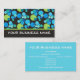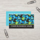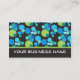 A bright and bold business card for many types of business, with a 'Blue Moons' abstract pattern in bright blues and neon green on a black background; from a handpainted paper collage design by Judy Adamson. Fully and easily customizable.