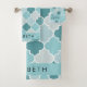 Blue Moroccan Trellis, Quatrefoil, Your Name Bath Towel Set