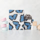 Seamless pattern design with blue morpho butterflies on hydrangea flowers linework background.