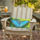 Butterfly Blue Morpho against a background of green foliage. A cute pillow for you or as a gift.