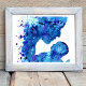 Mother and child painting created with bold blue watercolour by artist Catherine Sweetman. A celebration of the wonder of a Mother's love and the joy of motherhood. The perfect gift for Mother's day to show your mum how much you appreciate everything she's done for you. Original artwork by artist Catherine Sweetman