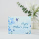 This postcard is a celebration of Mother’s Day, designed with a serene and graceful collection of blue floral illustrations. It features a palette of cool blues, reflecting the tranquillity and beauty of a clear spring sky. The flowers are rendered in different shades and sizes, from pale to deep blue, and are artfully arranged to create a sense of natural elegance.