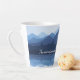 Blue Mountain Reflections Design Latte Cup with customizable text.