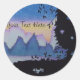 The original art illustration on this great sticker is produced from a watercolour picture that I a few painted a few years ago. I really enjoy working with this illustrative idea that I used for this mountain sunset landscape painting, I think the colours look great framed by the solid black silhouette trees in the foreground, the picture has little bit of a fairy tale effect. With its sunset sky this colour pencil landscape art looks very original on this sticker. This art sticker is customisable, you can add your own message. I think this little fantasy picture works well on this sticker will look great adhered to all kinds of stationary, postcards or envelpoes.