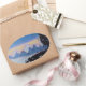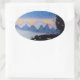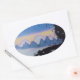 Blue mountain sunset landscape illustration oval sticker