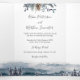 All in one, Elegant and rustic Wedding invitation with exquisite mountains and forest watercolor scenery. No need for extra details insert cards and RSVP cards to add to your invitation, save paper, time and money with this all in one invitation card. Watercolor landscape in dusty blue, navy blue, grey and rust shades. Floral details with flowers and foliage in dusty blue, navy blue, grey, sage and caramel tones. Ability to select customize further to add, adjust or change text to suit your needs. Ideal for outdoor lovers and /or mountain, forest wedding destinations. Coordinating products available. Same invitation with mountains with snow, foxes playing and deer also available. Part of our Rustic Winter Mountains wedding collection with a variety of coordinating products available. Visit entire collection at: https://www.zazzle.com/collections/rustic_blue_mountains_wedding_and_event_collection-119893780903977429