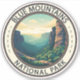Blue Mountains vector artwork design. The park is known for the Echo Point lookout, near the town of Katoomba, which has panoramic views of Jamison Valley and the Three Sisters, a towering sandstone formation and sacred Aboriginal site.