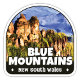 Arch-shaped Blue Mountains, New South Wales sticker featuring a striking digital art photo of the three sisters rock formation.