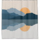 Abstract colourful illustration of sunrise with blue mountains reflected in the lake