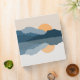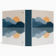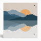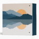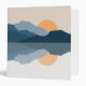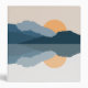 Abstract colourful illustration of sunrise with blue mountains reflected in the lake