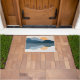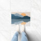 Abstract colourful illustration of sunrise with blue mountains reflected in the lake