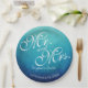 Blue Ombre Mr and Mrs Personalized Wedding Reception Paper Plates. Just add your name and wedding date.