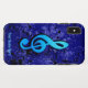 Protect your phone with this stylish slim and ultra-light iPhone case designed with illustraton of neon blue music note symbol print on a splatter paint background.. Please feel free to personalize this case as you wish.
