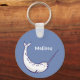 Keep your keys secure with this cute narwhal keychain or use this keyring as a backpack dangler or purse accessory. The keychain has a denim blue background and a fill-in-the-blank field so you can easily add your own name or short message. Makes a great small personalized gift or party favour. This keychain coordinates with other items in our Happy Narwhal collection.