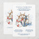 This classic maritime design is perfect for ocean lovers! Featuring a wooden ship wheel, a blue anchor, a life ring, and a sailboat over soft blue water, it's set against a clean white background with navy and red accents. Ideal for any seaside celebration or harbor-side party, it captures the adventurous spirit of the open sea with timeless illustrations.