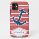 Blue Nautical Anchor with Red Stripes iPhone Case