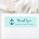 Baby shower favour tag stickers with nautical anchor in modern and chic dark navy blue and turquoise light sky blue chevron zigzag pattern. The perfect way to thank your baby shower guests.