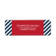 Modern red, white and blue return address label for weddings or any other occasions. It has a white and blue diagonal stripes pattern background and a red frame.