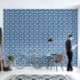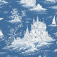 This splendid wallpaper features a nautical toile de jouy design of lighthouses, sailboats, islands, and gulls in a marine blue colour. Very beautiful and elegant, perfect for the beach house.
