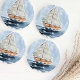 Blue Nautical Watercolor Sailboat Round Paper Coaster
