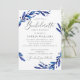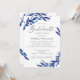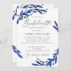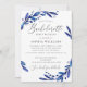 Elegant script Bachelorette party weekend invitation with blue navy floral botanical elements.