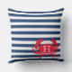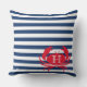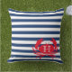 Blue Navy Red Crab Nautical Modern Stripes Outdoor Pillow