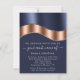 Blue Navy Rose Gold Border Wave QR Code Wedding