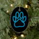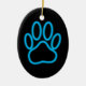 Blue Neon Dog Paw Print Ceramic Ornament