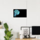 Blue Neon Side View X-ray Skull on Black Poster