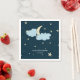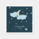 Cute midnight blue baby shower napkins to compliment the decorations of your baby shower table. The illustration has a starry night and yellow moon behind some blue clouds. All the text is in white and can be personalized. Illustrated and designed by Patricia Alvarez.
