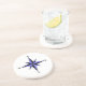 Sandstone coaster with blue and black compass symbol.