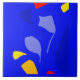 This ceramic tile showcases notes of yellow, light blue, orange and red in the form of a leaf, on the ultramarine background.
