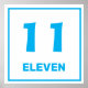Blue number eleven on white background with blue border. Help your little one learn the numbers with this number eleven design.