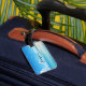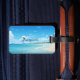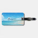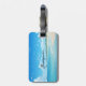 This modern luggage tag design features a Blue ocean beach