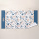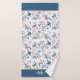 This bath towel set features a variety of blue watercolor ocean images, including whales, rays, seahorses, starfish, jellyfish, seaweed and more. Contrasting with the predominant blue tones is coral orange. The bath towel has the pattern at the middle, with matching blue borders on each end. The lower border has your monogram in coral orange, with the name written in white script over it. The hand towel and the wash cloth has the pattern alone. Be sure to see the matching shower curtain and bath mat in our store.
