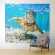 Blue ocean sea turtle face front tapestry