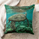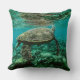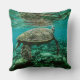 Blue ocean sea turtle swimming throw pillow