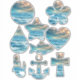 Blue Ocean waves Seascape Cloudy Sky Digital Painting nature Art geometric shapes decoupage stickers sheet