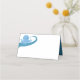 Placecards with a smiling, blue, octopus character. The little octopus is being held up by the arm of a larger octopus.