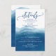 Blue Ombre Watercolor Wave Hand-Lettering Details Enclosure Card