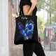 Blue on Black Floral Butterfly Personalized Tote Bag